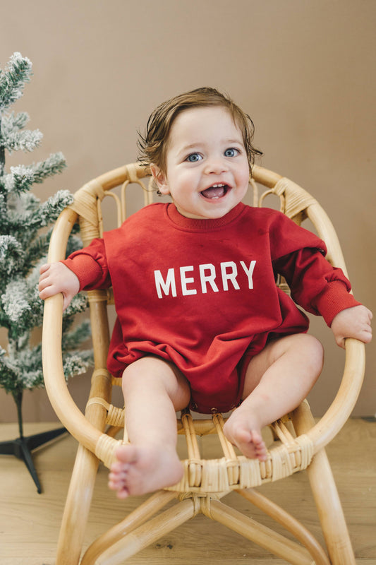 Merry Graphic Oversized Sweatshirt Romper: 0-3 months
