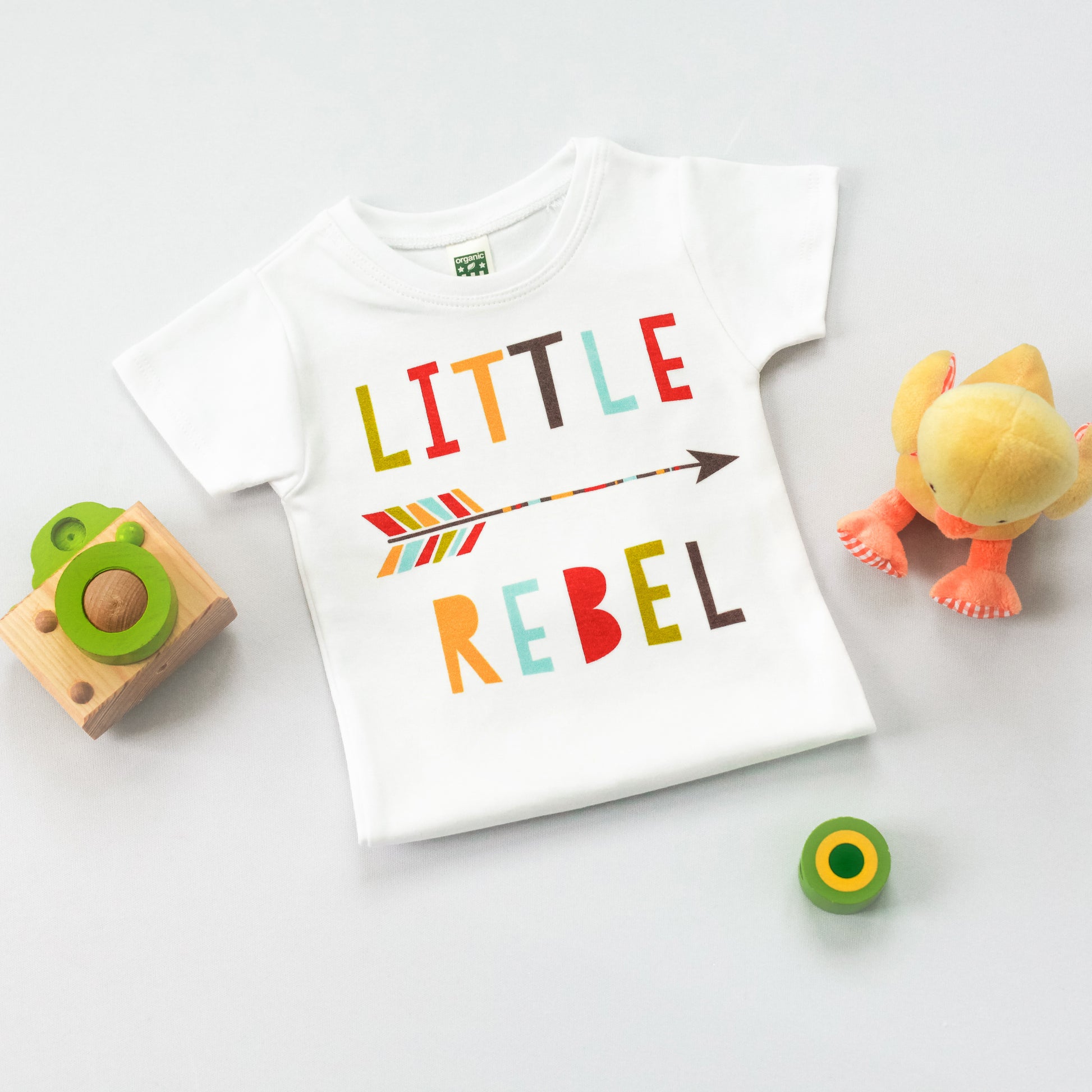 100% softest certified organic cotton bodysuit with a water based eco-friendly screen print. No thick plastic screen prints here. These water-based prints fuse into the fabric leaving it super soft to the touch!