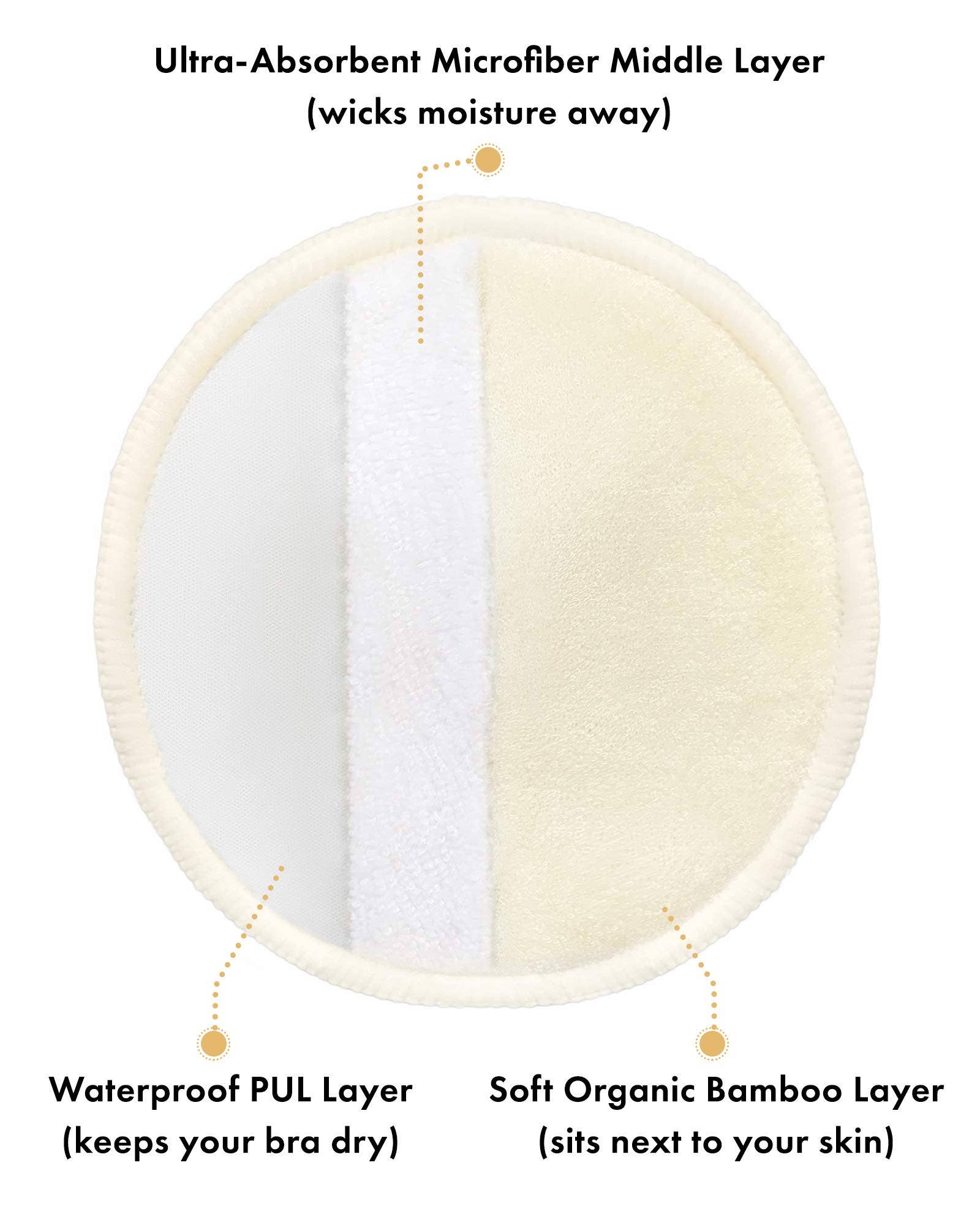 SOFT, ABSORBENT, AND HYPOALLERGENIC - Made of the softest bamboo plus wicking microfiber, these nursing pads are more absorbent and durable than cotton, and they offer superior comfort for chafed or sore nipples and sensitive skin. SAFE FOR MOM & BABY - OEKO Tex certified, these pads have a 100% organic bamboo inner layer, a high-absorbency microfiber middle layer for wicking moisture away, and an outer layer made of waterproof PUL fabric for protecting your nursing bras and clothing from leaks. ENVIRONMENTALLY FRIENDLY - Unlike disposable nursing pads, these washable breast pads can be reused over and over again. Simply machine wash and tumble dry between uses. CONTOURED SHAPE FITS INSIDE NURSING BRAS - These breast pads measure 4.5 inches in diameter and feature a clever contoured shape to fit smoothly and discreetly in your nursing bras. BREASTFEEDING MOM ESSENTIAL - The organic nursing pads multipack includes 5 pairs (10 pads) so you can always have an extra pair.