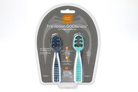 Designed for use with purees and other food blends, a NumNum GOOtensilâ„¢ is a pre-spoon that makes self-feeding easier for little ones just starting utensils. Unlike a spoon, the head is flat, so there's no scooping, no balancing, and no wrong way to hold it!