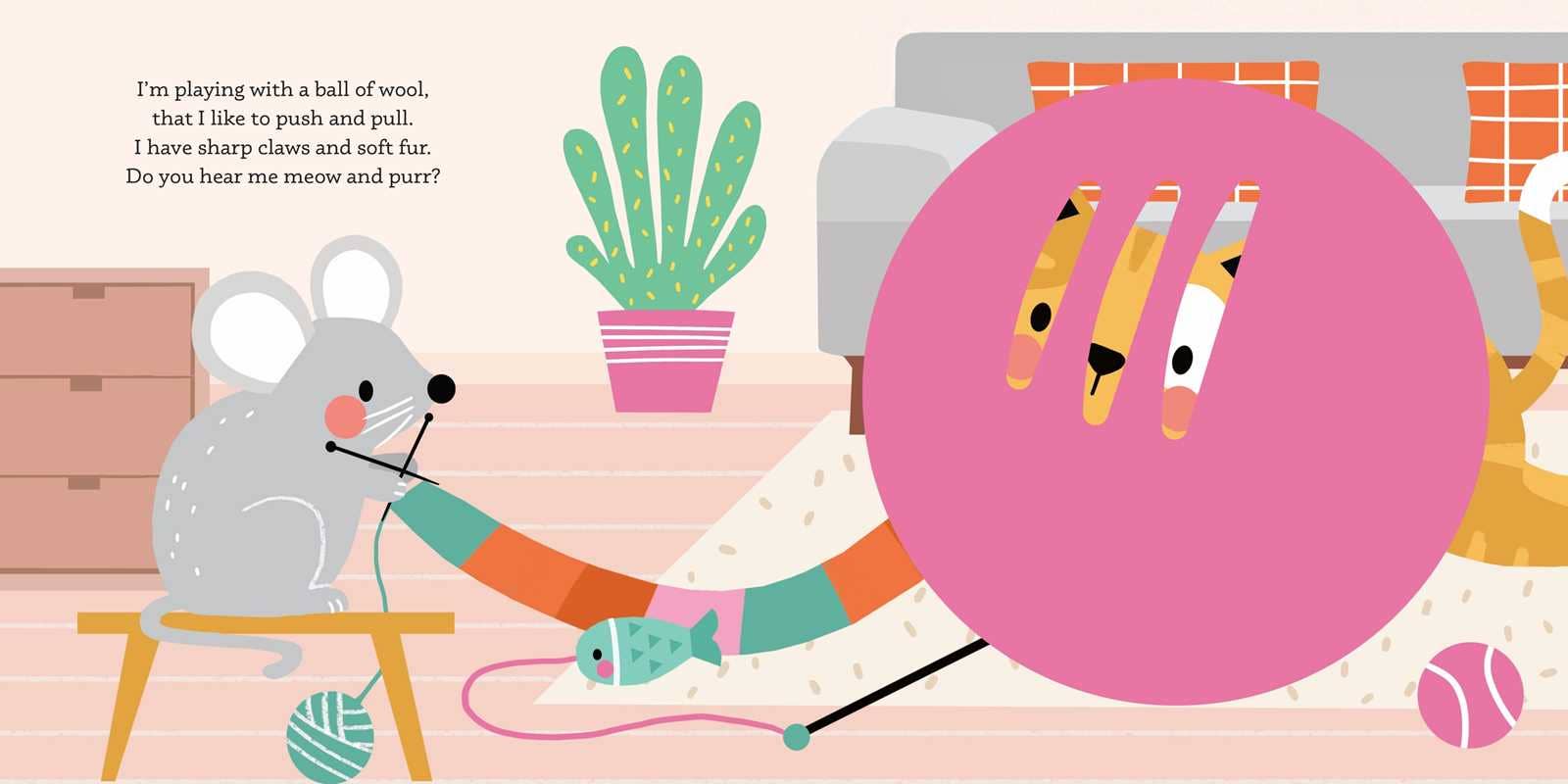 Who is hiding behind the big felt flaps? Have a jolly time with the sweet rhyming riddles, the playful peepholes, the soft flaps, and the cute little surprise! The soft fabrics of the flaps are part of the sensory experience to spark toddlers' curiosity as they meet new pet friends!